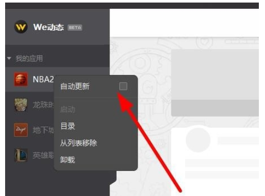 最后点击进入主页,在左侧窗口点击【我的应用】,即可看到电脑中的游戏,鼠标右击需要更新的游戏,选择【自动更新】,即可自动下载安装新版游戏,