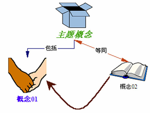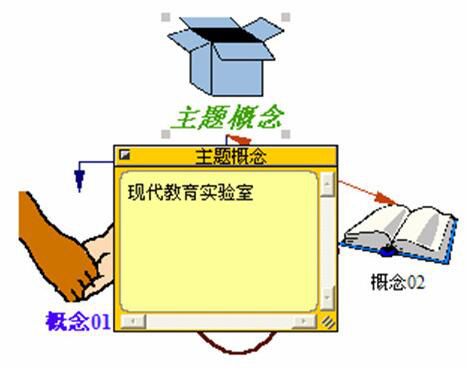 2、如果用户感觉自己建立的概念图不够的时候,可以通过复制粘贴的方式将外部的图形导入inspiration中,用它来作为框图的符号。例如下图的书本图形就是导进来的概念图。