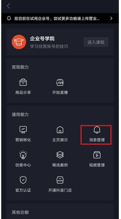 注意:如果你想使用自动回复功能,必须开通抖音企业号,详细方法请参考wmzhe.com整理的文章说明。