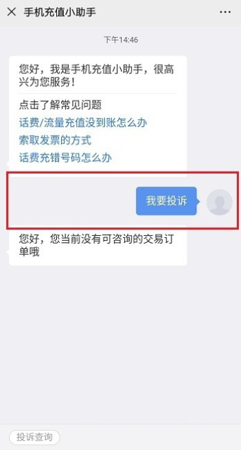 进入如图窗口,输入【我要投诉】,你可以联系客服解决充值话费没有到账的问题,