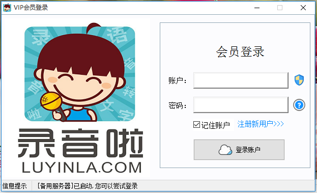 下载安装录音啦(避免安装在C盘,安装目录不能有空格,),安装成功,打开软件,如图,点击上方的【登录/注册】图标,