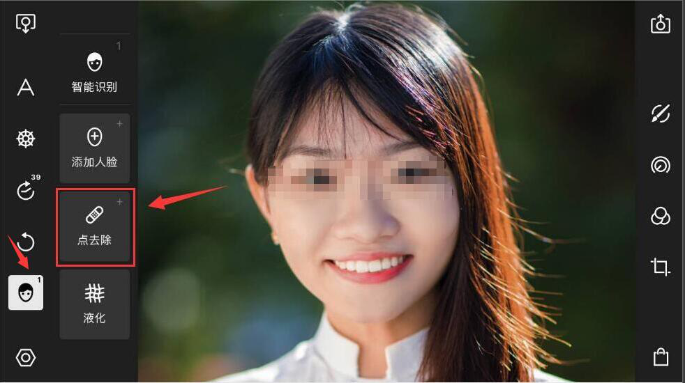 3、完成上一步后,接下来,用户在泼辣修图中,点击人像菜单里的“点去除”。泼辣修图便开始执行把人p掉的指令。