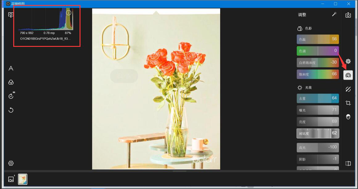 很多修图软件都实现不了图片的批量导入导出,也实现不了电脑手机无缝同步修改的功能,而泼辣修图却能实现。用户如果想将图片优化得更精美,那建议在修图过程中要留意直方图的数据和变化。