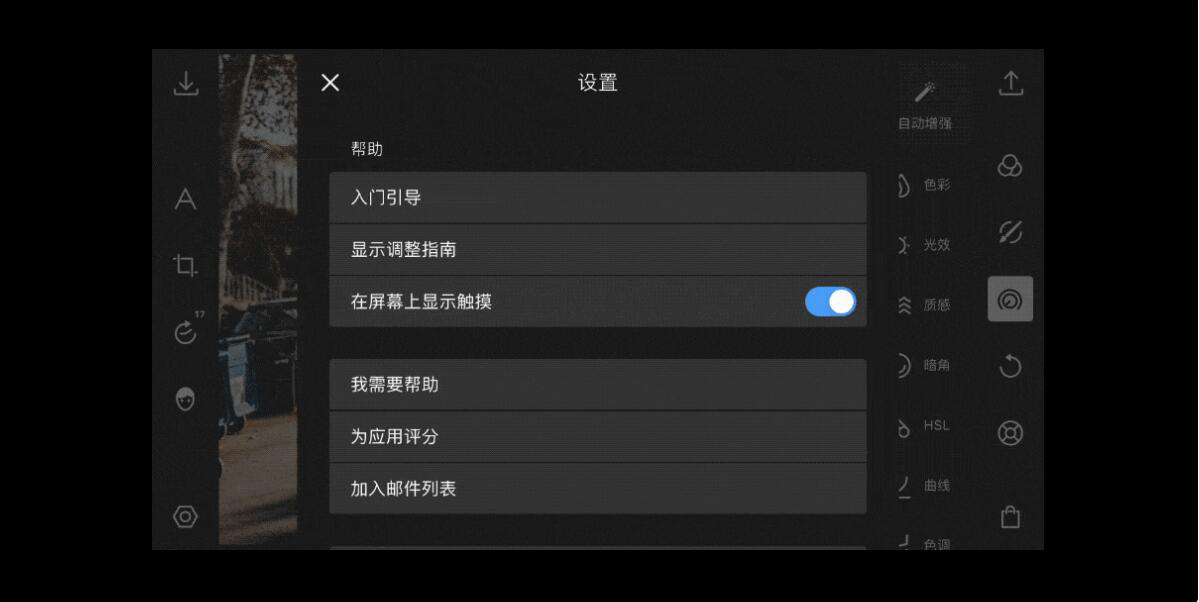很多泼辣修图资深玩家在做教程时,希望鼠标点击的地方会有一个圆圈来突出自己的当前操作,让学员看得更清晰。那么可以在泼辣修图的设置里,开启“在屏幕上显示触摸”的选项。