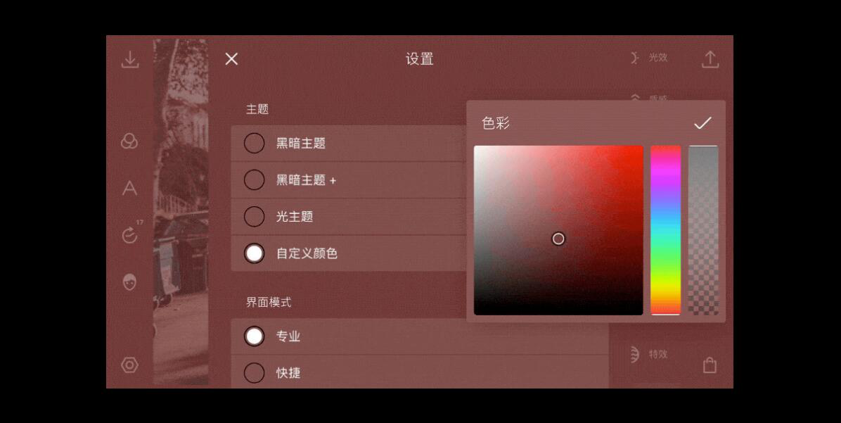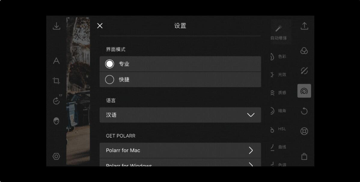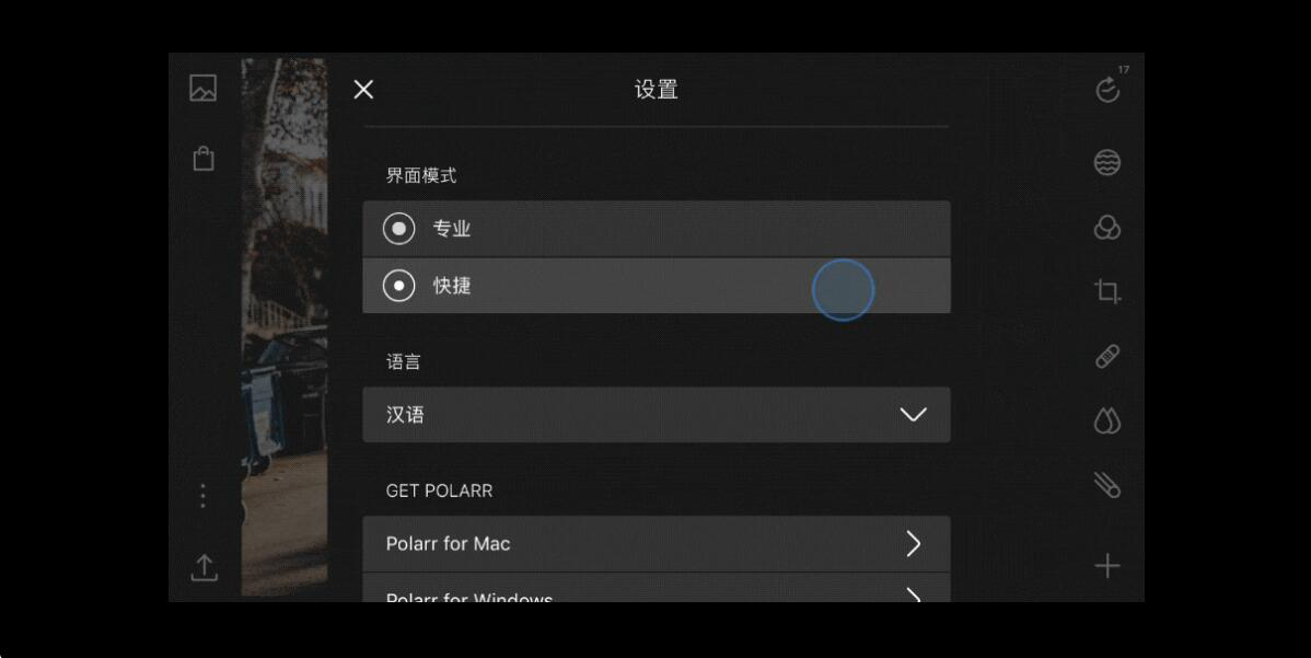 泼辣修图资深玩家要注意的是无论自己是想更换主题还是切换操作界面模式,都可以在泼辣修图的“设置”里面进行相关的设置。设置完毕后,也无需重启泼辣修图,非常的人性化。