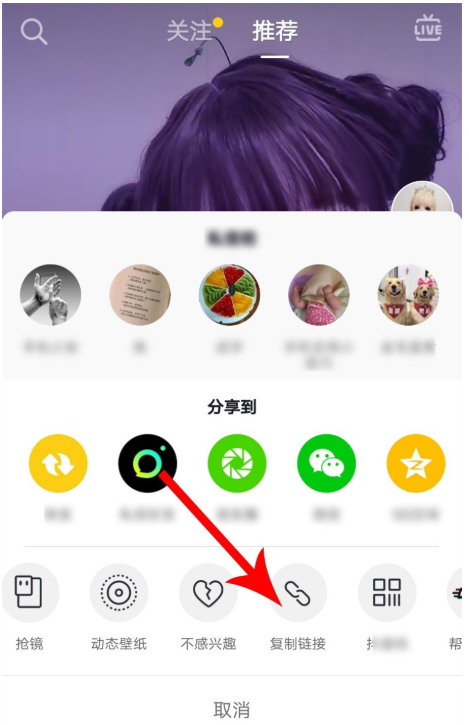 出现底部弹窗,如图,向左滑动选项,然后点击【复制链接】,