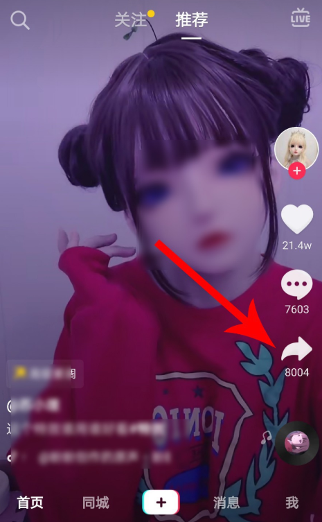 首先打开抖音APP,进入视频播放界面,找到自己喜欢的视频作品,点击右侧的分享图标,