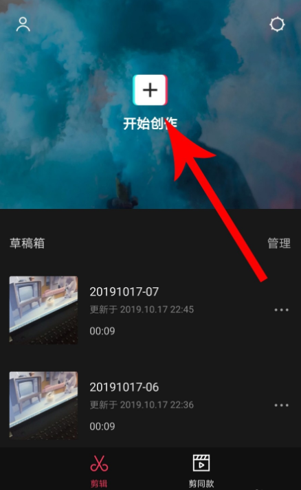 然后返回手机桌面,点击剪映APP,进入界面,如图,点击【开始创作】,