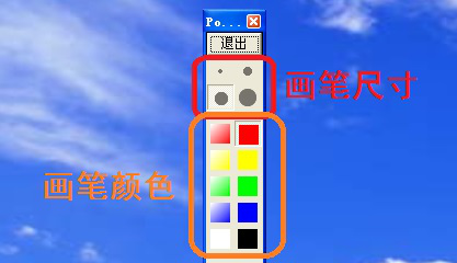 4、首先界面最上方为画笔尺寸和颜色功能键(如图)。这里的画笔提供了尺寸4种尺寸和8种颜色,可根据需要选择。