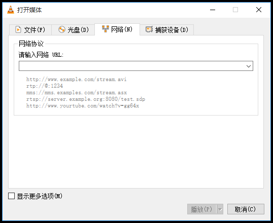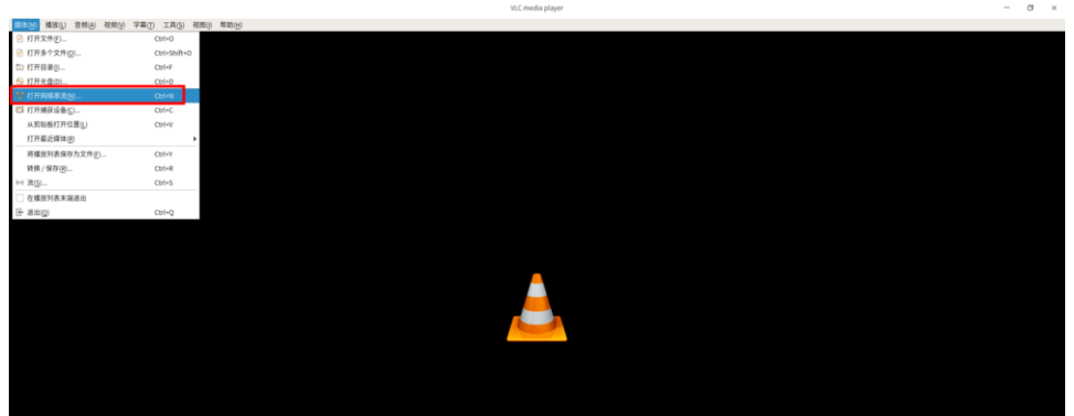 打开VLC播放器,进入软件界面,在上方菜单栏中点击【媒体】——【打开网络串流】,弹出对话框,输入网络URL,