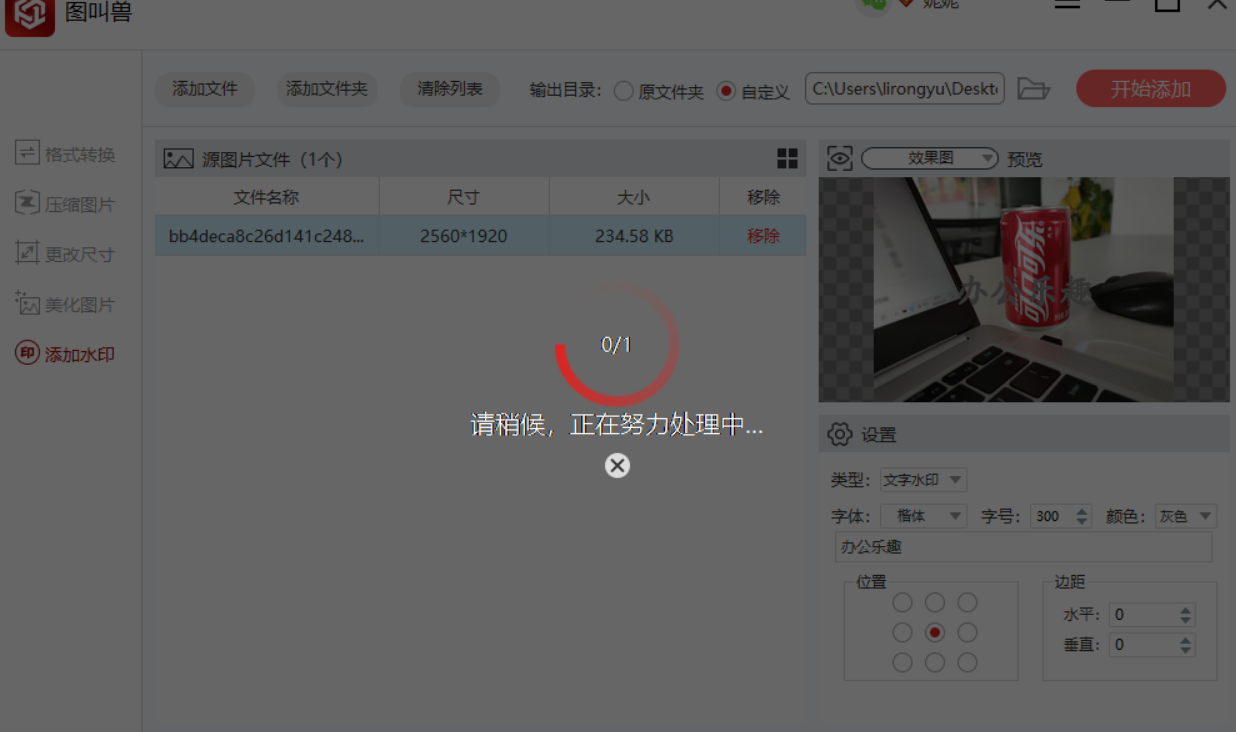 设置完成,点击【开始添加】,软件即可自动给图片加水印,等待处理结束。