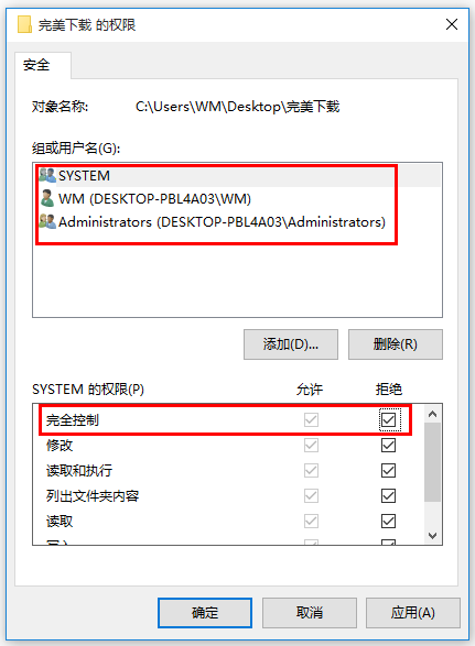 打开面板,点击切换【安全】选项,然后点击【编辑】,如图,逐一选择每一个组或用户名,在完全控制里勾选拒绝