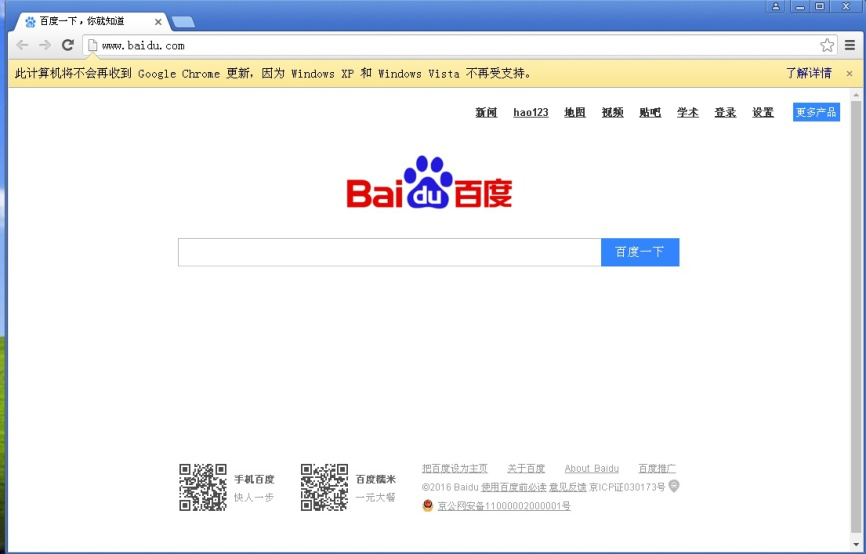 7、重新打开谷歌浏览器,可以看到主页变成了刚才设定的特定网页“www.baidu.com”。