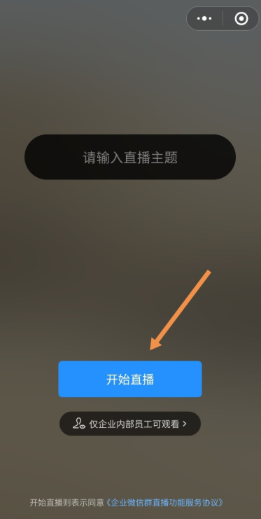 现在进入直播窗口,输入直播主题,点击【开始直播】;另外,点击【仅企业内部员工可观看】,你可以选择观看直播的人群,