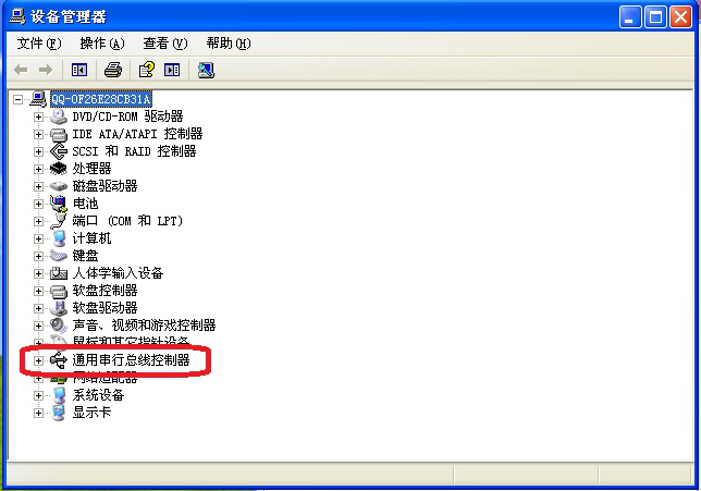 3、在弹出的“设备管理器”窗口中找到“通用串行总线程控制器”。