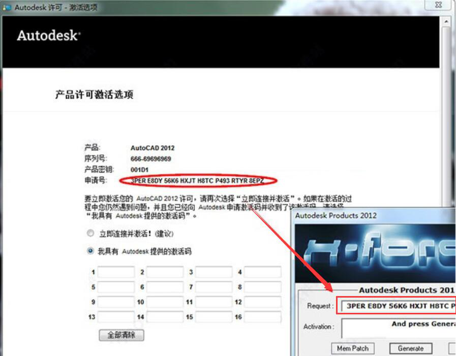 5、接着,来到产品许可激活的界面。如下图,用户将申请号直接复制到“Request”中。