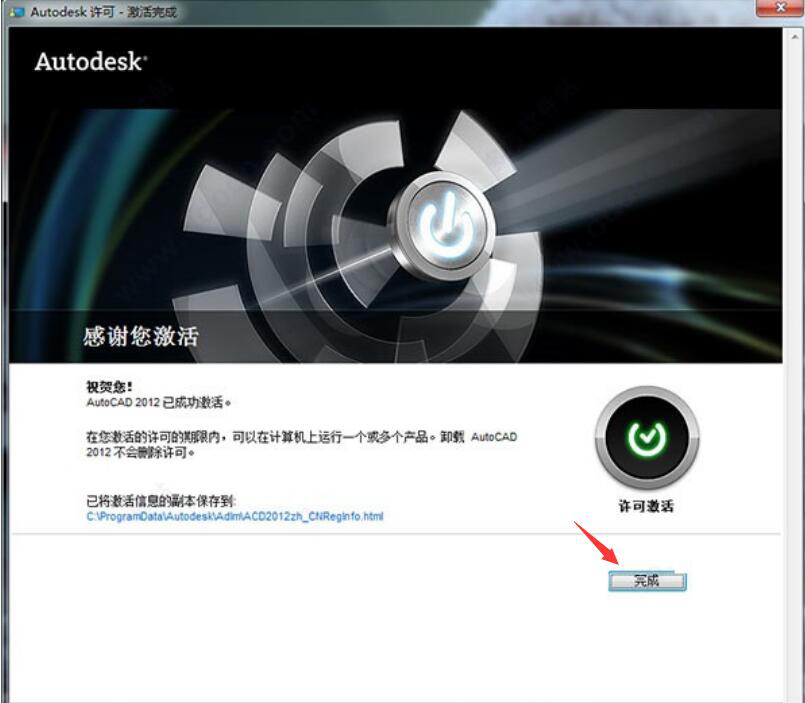 8、最后,用户可以发现cad2012注册机已经成功激活了。