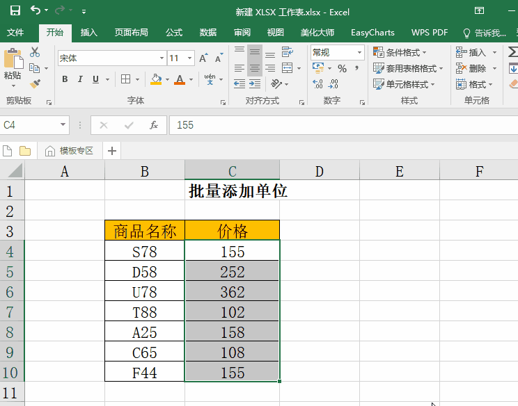 需要给数据添加单位,为了节约时间,不用逐一进行添加,今天小编教你一个批处理方法。