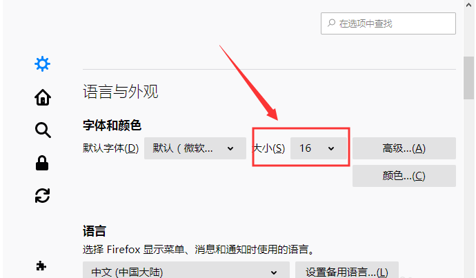 另外,如果你想要修改浏览器的文字大小,可以这样操作:点击进入选项窗口,默认显示常规设置,然后找到并点击【字体和颜色】,自行设置字体字号即可。
