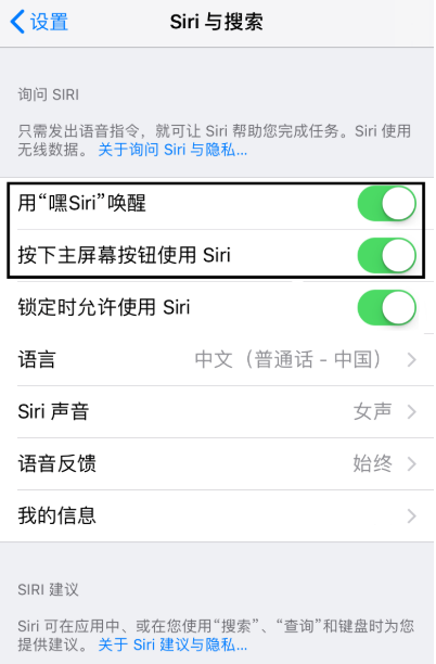 虽然很多人不习惯使用Siri,但是它会一直在后台运行,消耗电量,小编在此建议关闭Siri。进入设置界面,点击【Siri搜索】——【用“嘿Siri”唤醒】,将其关闭。