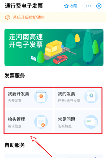打开这一功能,进入界面,你可以看到【我要开发票】、【我的发票】、【抬头管理】等选项,