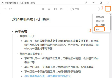 如何使用幕布笔记打印文档?