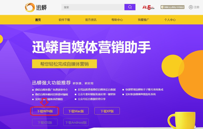 目前迅蟒自媒体助手只有电脑版本,针对不同运行环境分别提供了WIN版、MAC版和XP版三种版本的下载。其中WIN版适用于WIN7、WIN8、WIN10系统的安装,MAC版是苹果电脑的专用版本,XP版适用于XP系统安装。