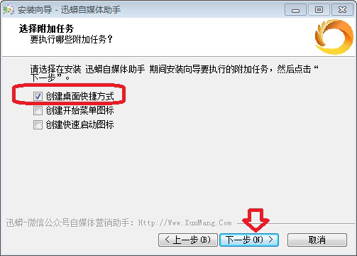 8、选择【创建桌面快捷方式】,方便找到该软件。然后点击【下一步】。
