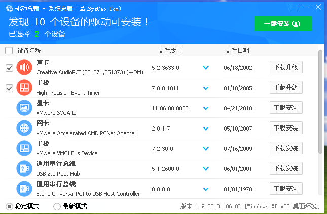 除了上面的一键智能安装模式,驱动总裁还为有特殊要求的用户提供了手动自选安装模式。