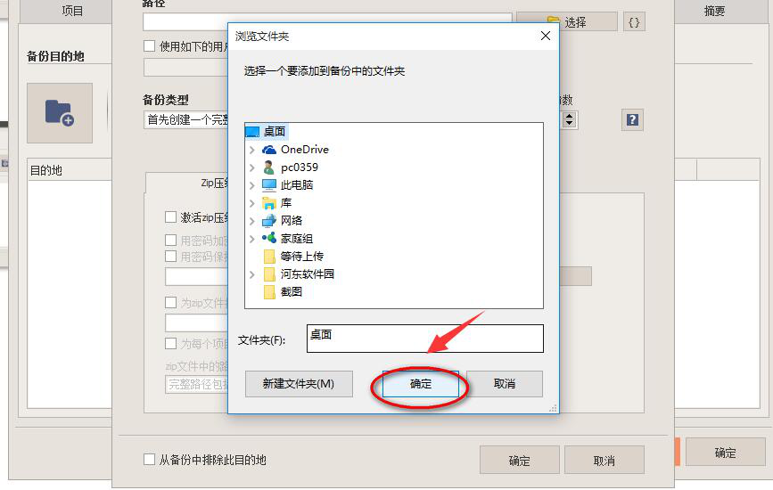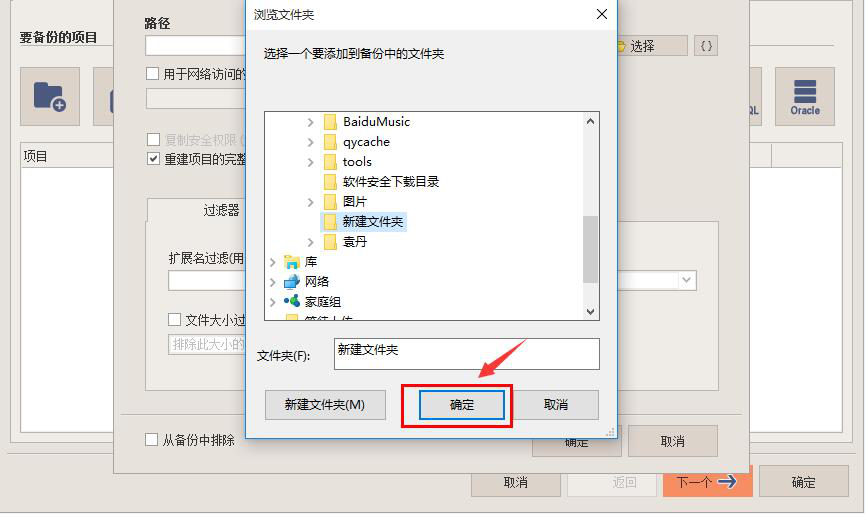 8、找到需要备份的文件需要备份的目的地位置,再点击“确定”按钮。