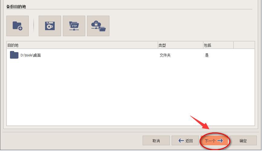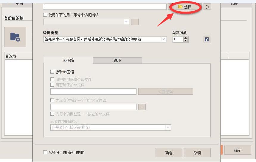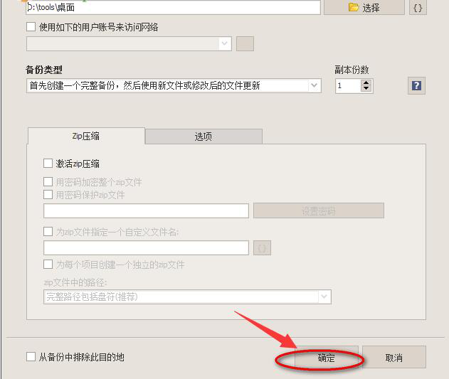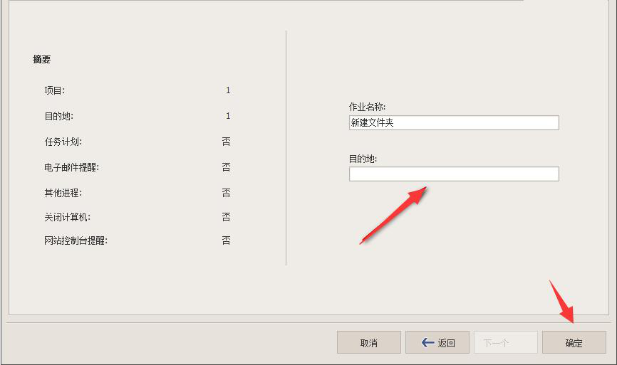 11、到了这一步,用户还需要填写目的地的位置,要注意,填写的时候,要与上述步骤中设置的备份目的地的路径一致,再点“确定”按钮。