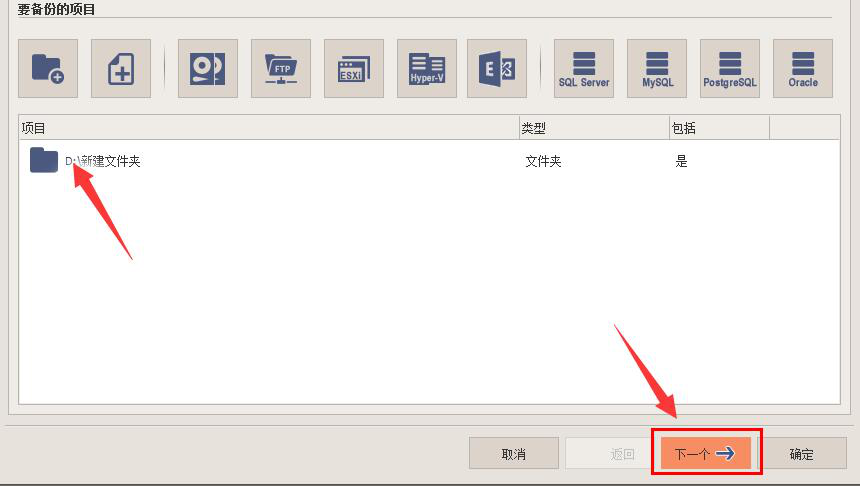 5、接下来,回到IperiusBackup新建备份作业的“项目”操作界面,在此界面中,再次点选需要IperiusBackup备份的文件,再点击其右下方的“下一个”按钮。