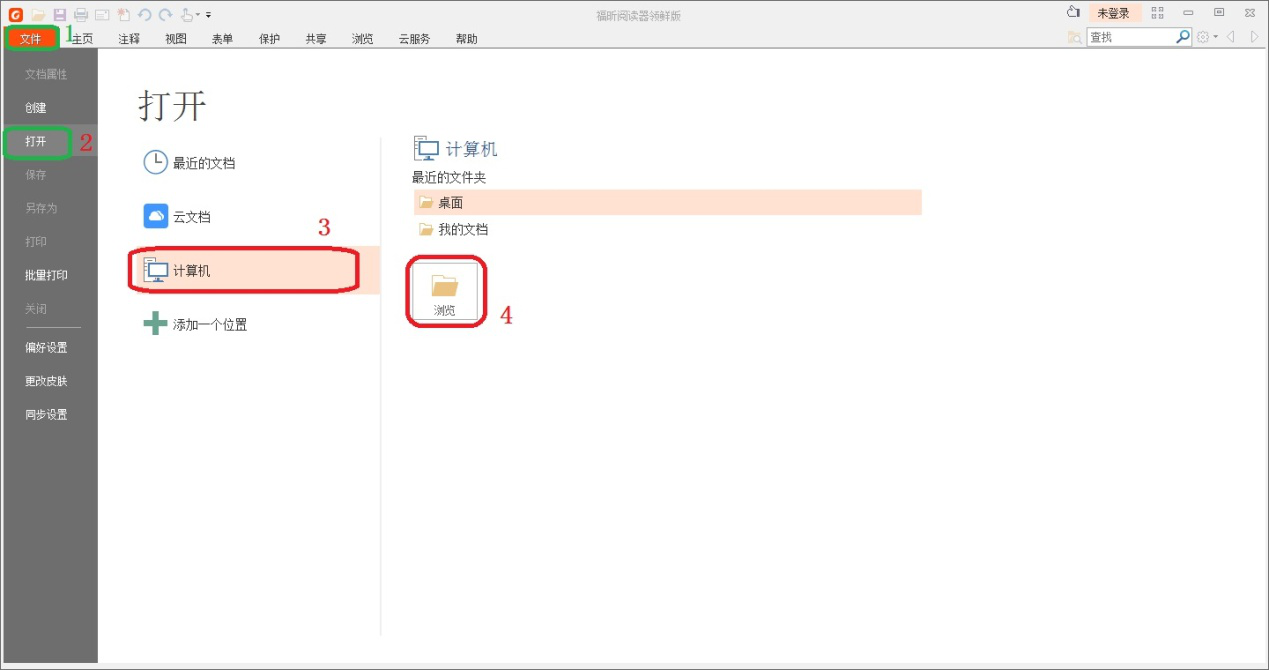 2、选择左上角【文件】选项,点击【打开】;选择【计算机】,点击浏览。
