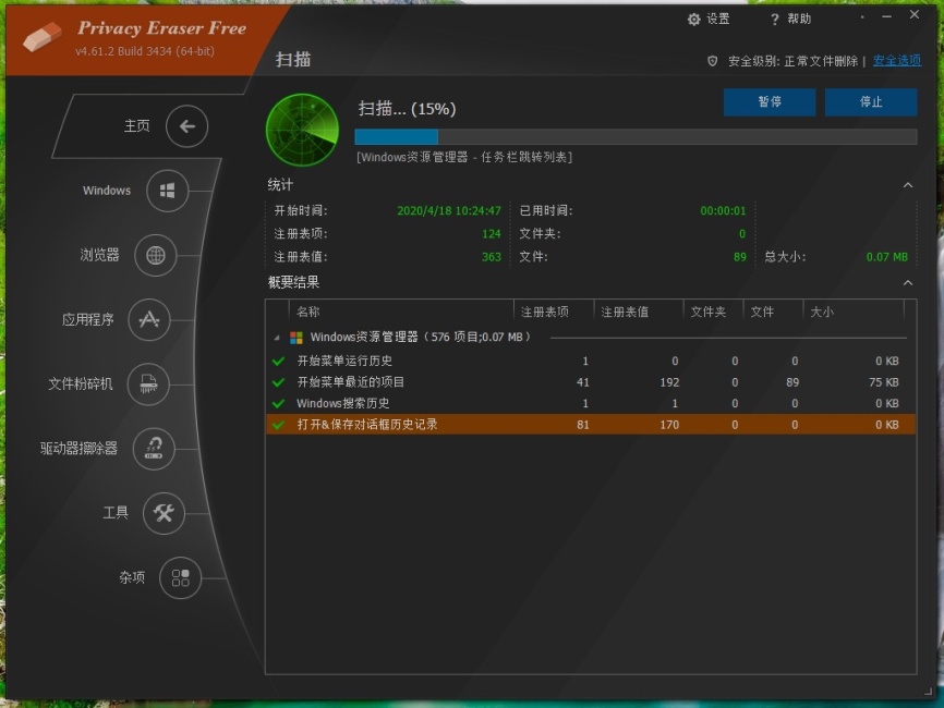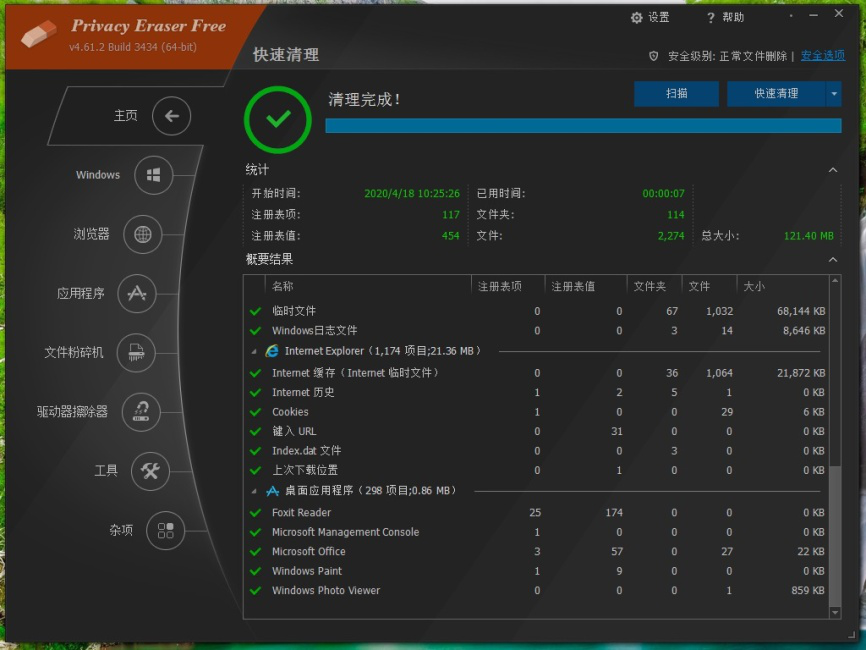 以上就是使用Privacy Eraser free清理电脑的一般操作。除此之外,用户还可直接点击【主页】选项中【快速清理】、【清理&重启】、【清理&关机】进行快捷清理。