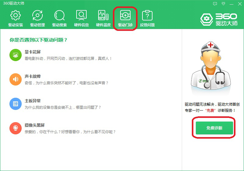 8、【驱动门诊】和【反馈问题】。主要是为用户提供驱动问题的诊断和解决渠道。
