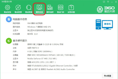 6、【硬件信息】。用户在此界面可以查看并导出当前电脑系统环境和配置信息。