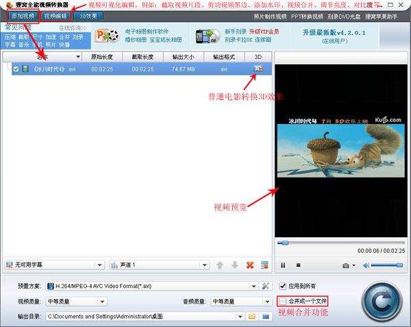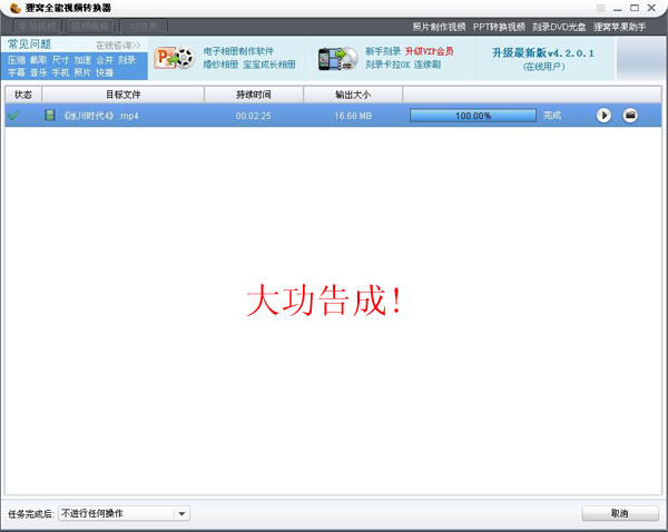 格式选择完成,设置输出目录,点击右下角的【转换】按钮,软件即可自动转换视频格式。