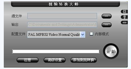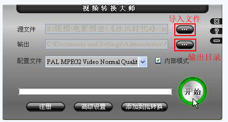 选择一种视频格式,进入转换界面,如图,点击【源文件】后面的按钮,导入视频文件,设置输出目录,点击【开始】,软件即可转换视频格式。