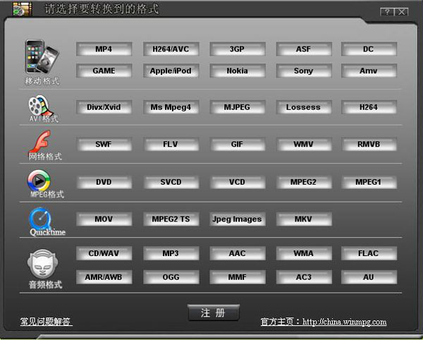 首先下载安装视频转换大师,打开软件,如图,选择你需要的视频格式;如果没找到,可以点击【更多】,展开格式列表,