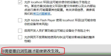 5、这时会看到浏览器界面下方出现“你需要重启浏览器才能使更改生效”的提示。用户只要按提示重启浏览器,Microsoft Edge浏览器兼容性设置即可生效。