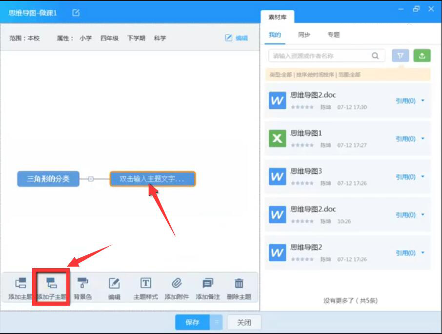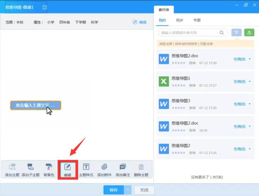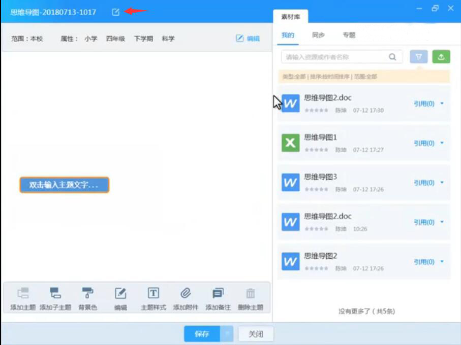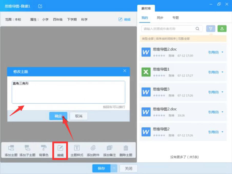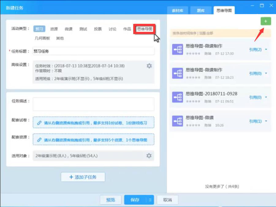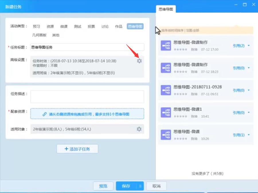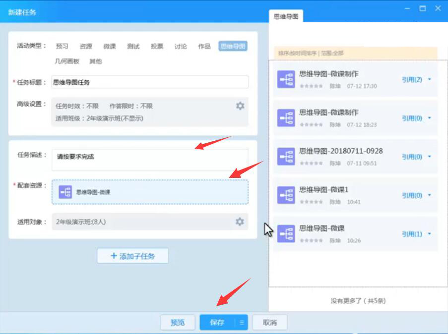 10、此外,再填写任务描述,并在右侧列表中将思维导图拖放到“配套资源”处,再点击“保存”按钮。