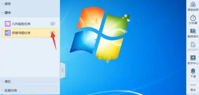 12、虽然,学生端收到了AiClass思维导图,但是,用户还需要回到桌面的任务栏,将该AiClass思维导图任务设置为可见,这样学生才能正常打开。