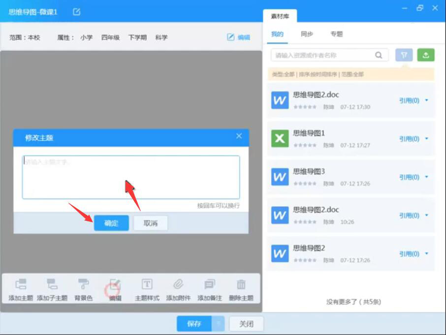 6、同样的,在弹出来的子主题小窗口中,输入子主题的内容后点击“确定”按钮。