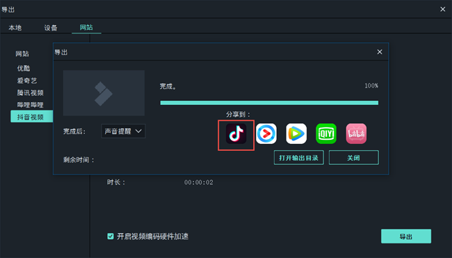 预览视频效果,确认满意,点击导出,你可以将视频上传到抖音,与他人一起分享!