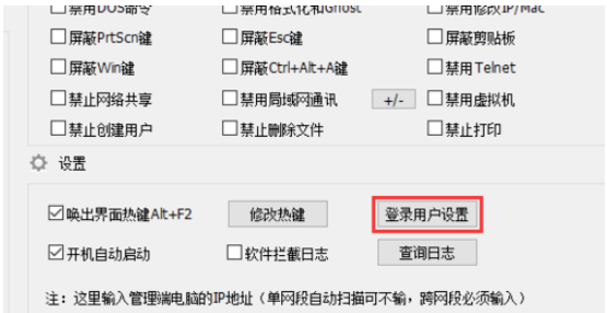 以防万一,在右侧下方找到并点击【登录用户设置】,修改软件初始登录密码,防止策略被篡改。