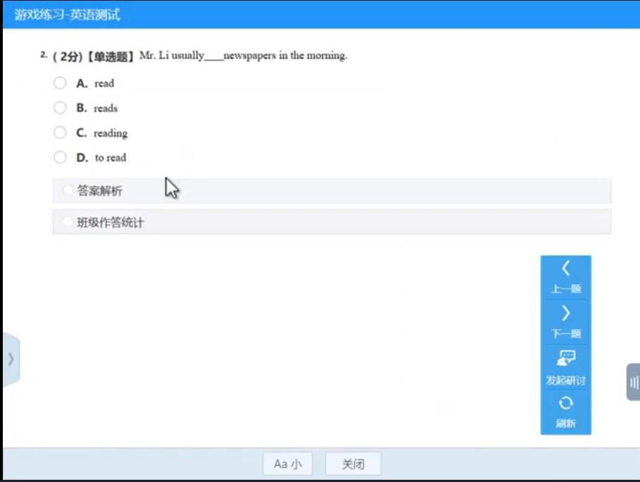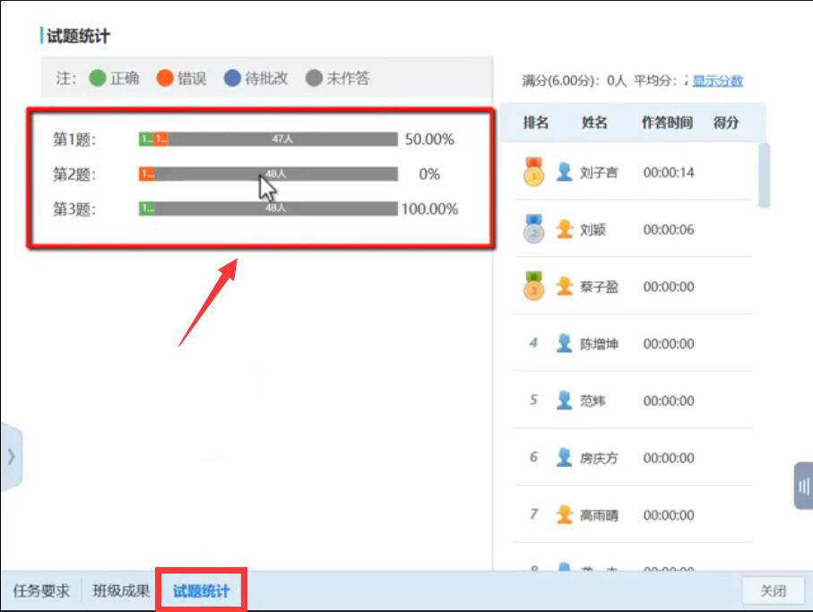 11、老师还可以点击“试题统计”来了解学生们的大致答题情况。