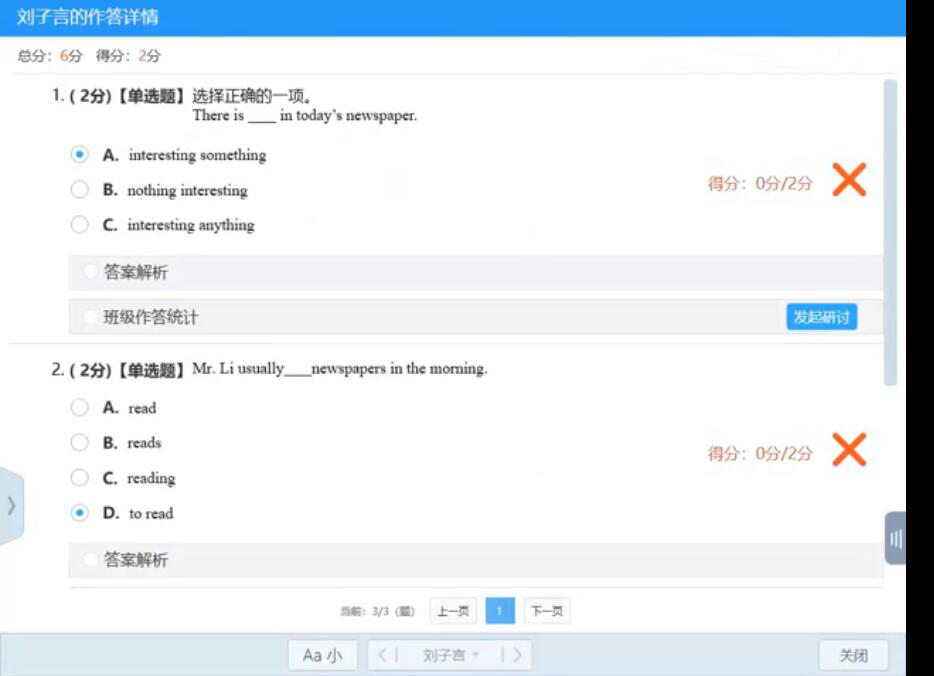 10、AiClass便会弹出该学生的作答详情,系统会自动统计分数。