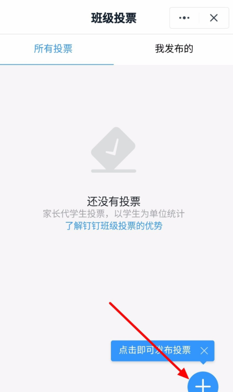 进入班级投票窗口,如图,点击右下角【+】,