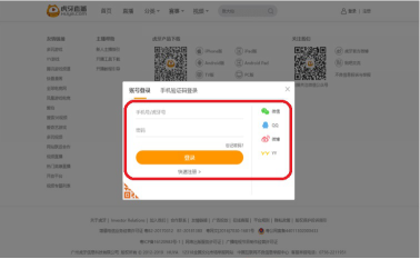 2、弹出直播平台的登录页面,输入用户直播平台账号(这里是虎牙账号),点击【登录】。