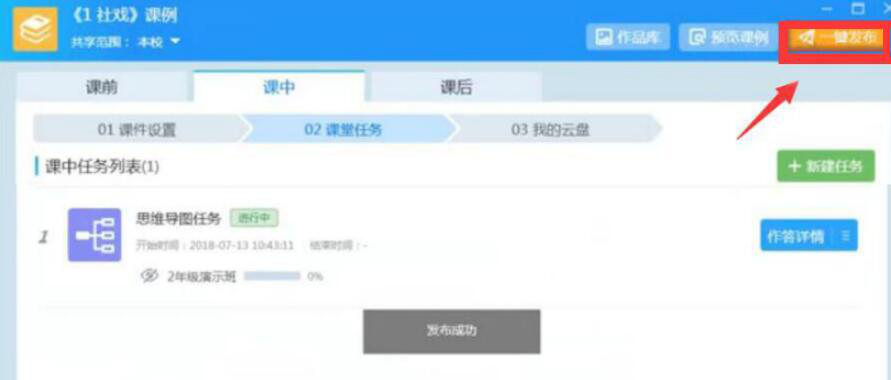 6、随后,老师点击右上方的“一键发布”按钮即可将该AiClass思维导图推送至学生端。